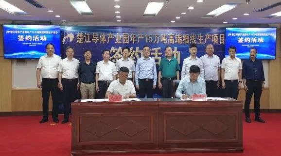 此次签约的楚江导体产业园年产15万吨高端细线生产项目落户无为市泥汊镇,达产后年产值约100亿元,将成为亚洲领先高精细线导体生产基地。产品填补了特种导体、中低压导体、柔性导体等市场,进一步丰富全产业链铜导体种类,可满足98%的电线电缆客户一站式购买需求。