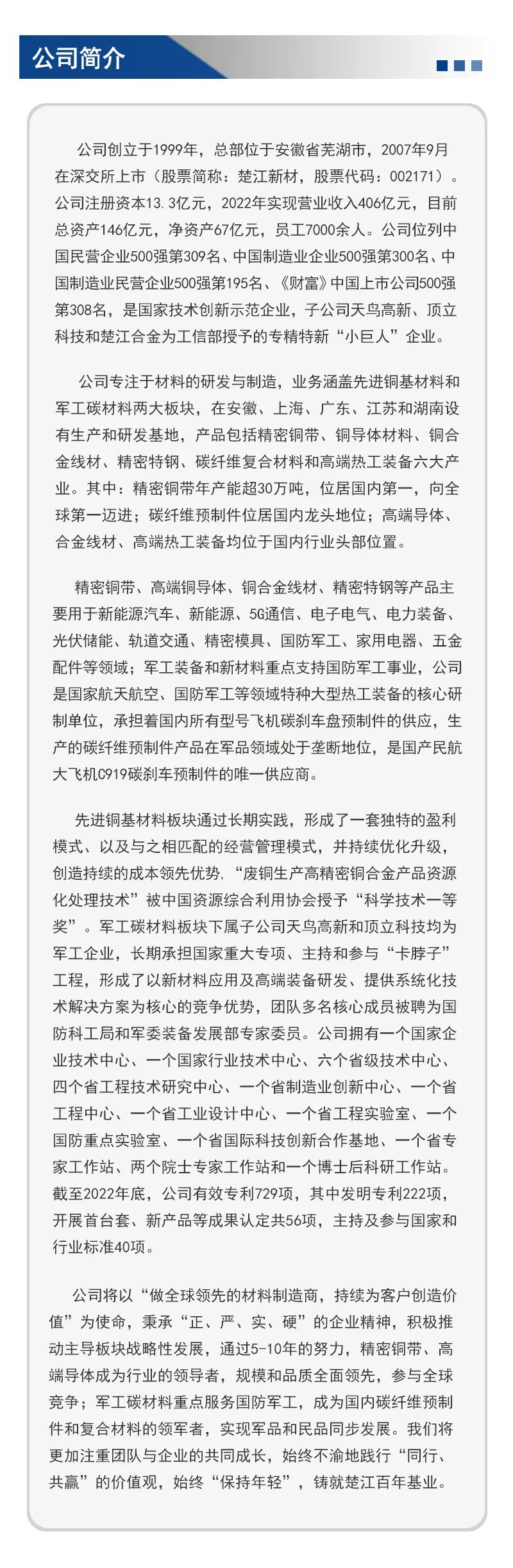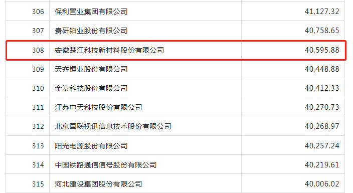 近日,《财富》发布2023年《财富》中国上市公司500强排行榜,楚江新材(股票代码:002171)以405.96亿元的营收位列308位,较去年提升25位。