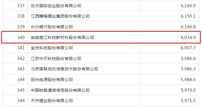 近日,《财富》中国500强排行榜揭晓,楚江新材位列第340位。