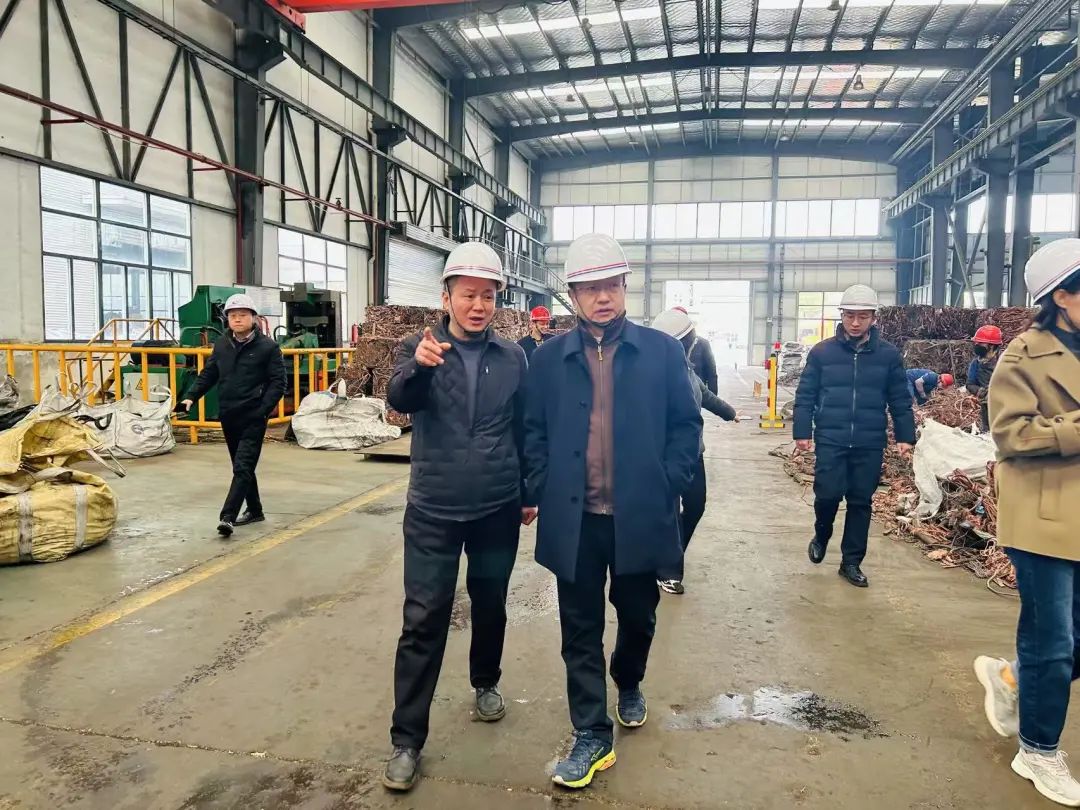 调研期间,刘巍副会长一行实地考察了原料车间及产品生产线,了解公司再生金属资源利用的规模及生产经营情况。