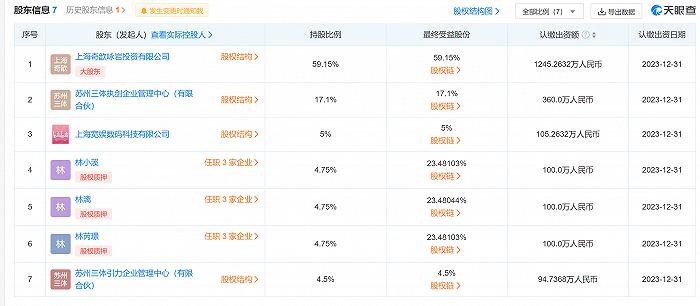 2018年12月,《三体》的全球版权方三体宇宙(上海)文化发展有限公司(下称“三体宇宙”)成立,游族网络通过上海奇歆咏岩投资有限公司持有该公司59.15%的股份,为其第一大股东。