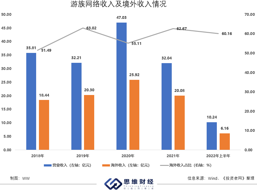 出海寻找增长点,已成为头部游戏企业的共识。其中三七互娱(002555.SZ)的境外收入在当期总收入中的占比由2020年的14.88%上涨到了2022年上半年的37.48%;世纪华通(002602.SZ)等游戏公司也十分重视海外市场。在此背景下,缺少头狼的游族网络,其海外狩猎场(市场)也遭遇了压缩,截至2022年上半年,游族网络的海外收入为6.16亿元,仅是2021年全年的3成。