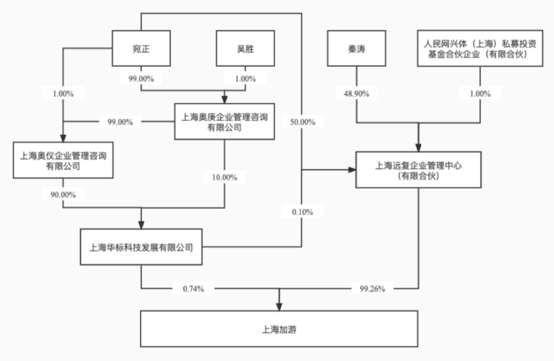 人民网也出现在股权结构中,人民网兴体(上海)私募投资基金合伙企业(有限合伙)拥有上海远复企业管理中心(有限合伙)1%的股份,而上海远复拥有上海加游99.26%的股份。
