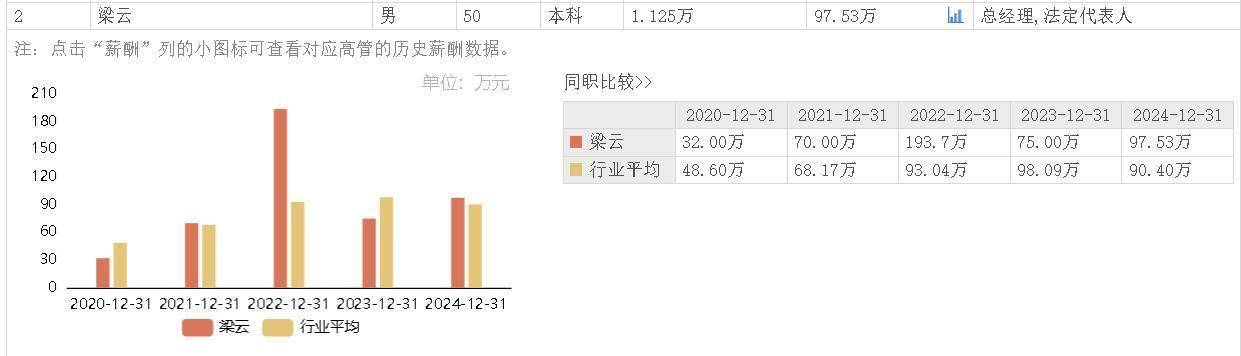 值得注意的是,江特电机的总经理梁云在2024年的薪酬达到了97.53万元,相比上年的75万元,涨幅达到了30%。梁云自2019年8月起担任公司总经理,此前曾任天津华兴董事长及江特电机副经理。