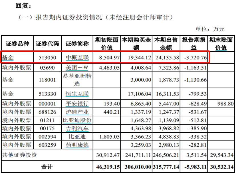 其中因持有易方达中证海外互联ETF导致的亏损金额就高达3720万元,但截止到2021年末御银股份已全部卖出了所持此款基金份额,对该笔证券投资已经止损。
