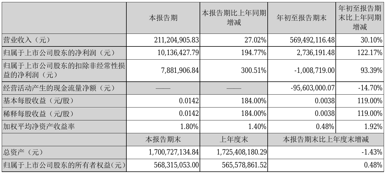 挖贝网10月25日,延华智能(002178)近日发布2021年前三季度报告,报告期内营业收入569,492,116.48元,同比增加30.1%;净利2,736,191.48元,同比净利增加122.17%。