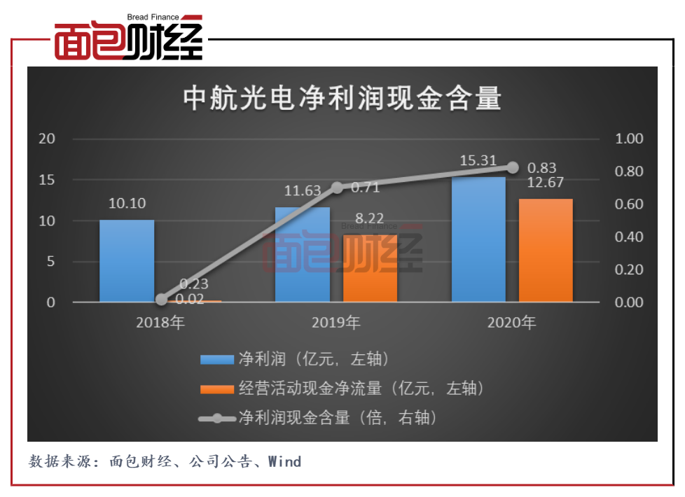 2018年至2020年,中航光电的净利润现金含量上升较明显,但持续小于1,主要系公司同期存货及经营性应收项目的规模增长。2020年,公司存货和经营性应收项目分别较去年增加7.72亿元和14.40亿元。