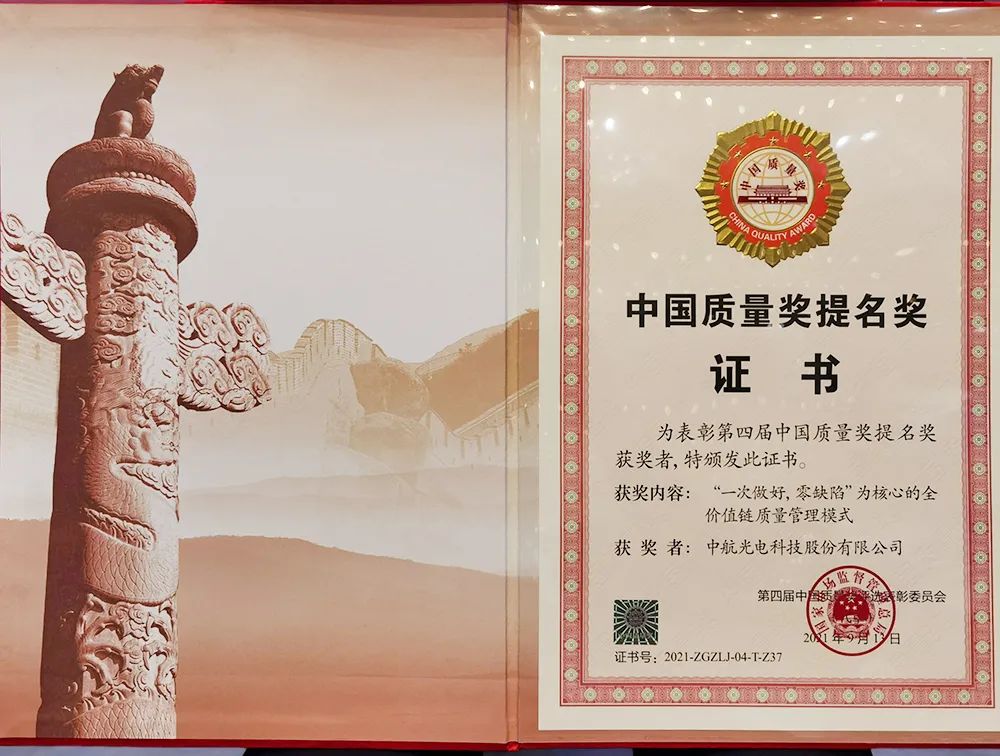 2020年,中航光电荣获2018-2019年度河南省省长质量奖。连续两年,从河南省省长质量奖到中国质量奖提名奖,既是对中航光电50多年来坚守“航空报国、航空强国”初心使命、深耕质量文化建设的肯定,也是对企业致力于打造质量管理核心竞争力,以质量赢取市场和未来的充分鼓励。