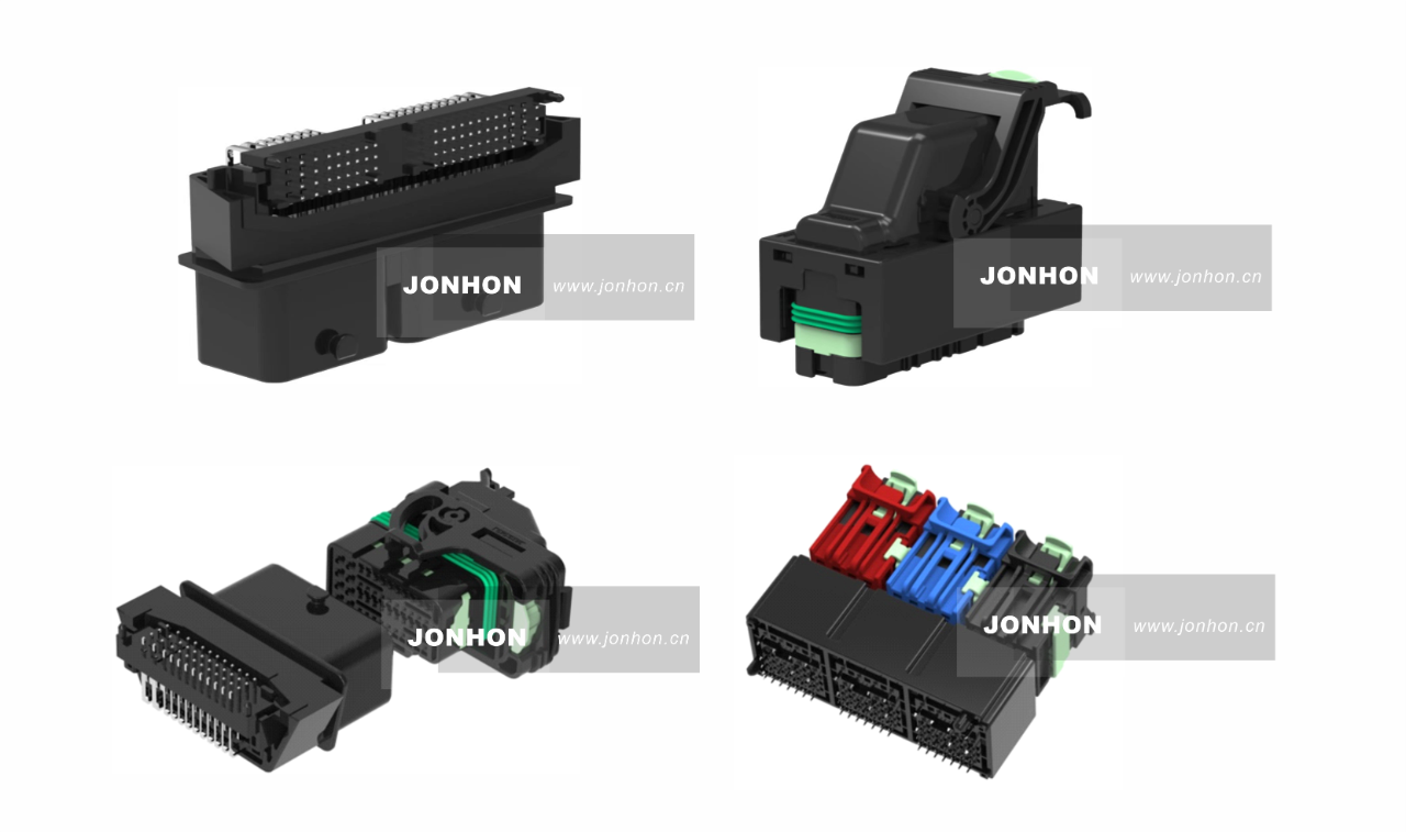 The vehicle low-voltage high-density connectors developed by JONHON possess both highly integrated power supply and signal transmission capabilities. They come in a rich and complete range of models, covering different specifications from 32-pin to 154-pin, and can stably adapt to the complex in-vehicle electronic environment. This product is widely used in fields such as OBCs, battery packs, smart cockpits, and autonomous driving control modules.