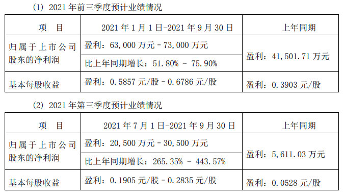 再生时代报道/纳思达披露2021年前三季度业绩预告,该公司预计前三季度归属于上市公司股东的净利润为6.3亿元至7.3亿元(不含奔图电子),比去年同期增长51.8%至75.9%。