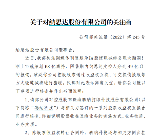 5月21日消息,5月20日纳思达股份收到深交所关注函,近期,有媒体发文《A股惊现减持套现大漏洞!刚上市就策划68亿减持,限售期内纳思达实控人分走49亿!》的报道,质疑纳思达控股股东通过收益权互换、可交换债换股等方式绕道减持进行套现。对此,赛纳科技还多次强调,这些减持都是“被动”的。或者更直白点说,与主动减持性质不一样。