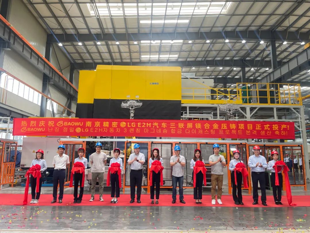 座谈会结束后,双方至南京精密压铸车间意德拉2700T压铸机旁参加“南京精密 LGE E2H汽车三联屏镁合金压铸项目”正式投产仪式及剪彩活动。