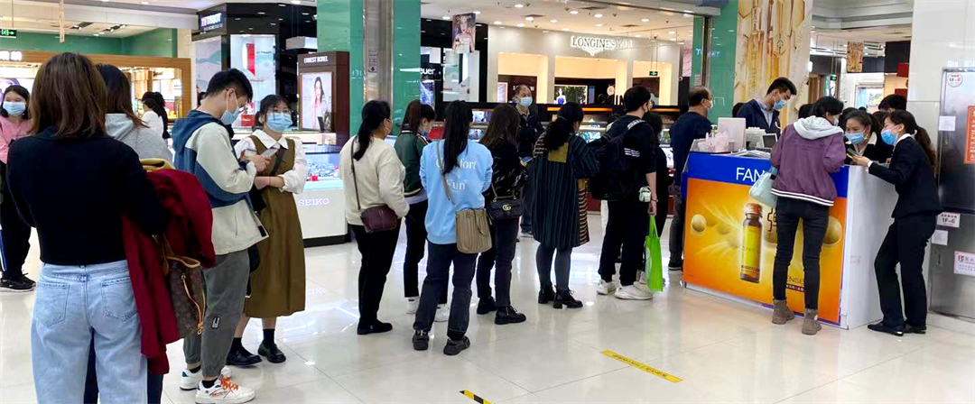 元旦假期,位于天河商圈的广百天河中怡店的客流人数直线上升,其中化妆品类销售同比上升超50%,超市销售同比增长超30%。门店围绕“新年新愿”主题营销活动,营造跨年迎新的仪式感,吸引众多消费者到天河商圈开启“打卡”、“逛吃”模式,体验迎新年的热闹气氛。在门店首层,雪花秀、欧莱雅举办“时光胶原主题”线下巡展、“虎啸新年美礼到家”星品体验活动。活动现场不时排起小长龙,吸客效果显著,两大品牌首日销售同比均有不同程度的增长。