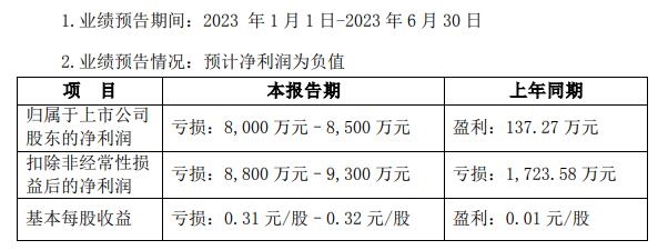 7月13日,中光学(002189.SZ)披露2023年半年度业绩预告,公司预计上半年归属于上市公司股东的净亏损8000万元–8500万元,由盈转亏;扣除非经常性损益后的净亏损8800万元–9300万元;基本每股亏损0.31元/股–0.32元/股。