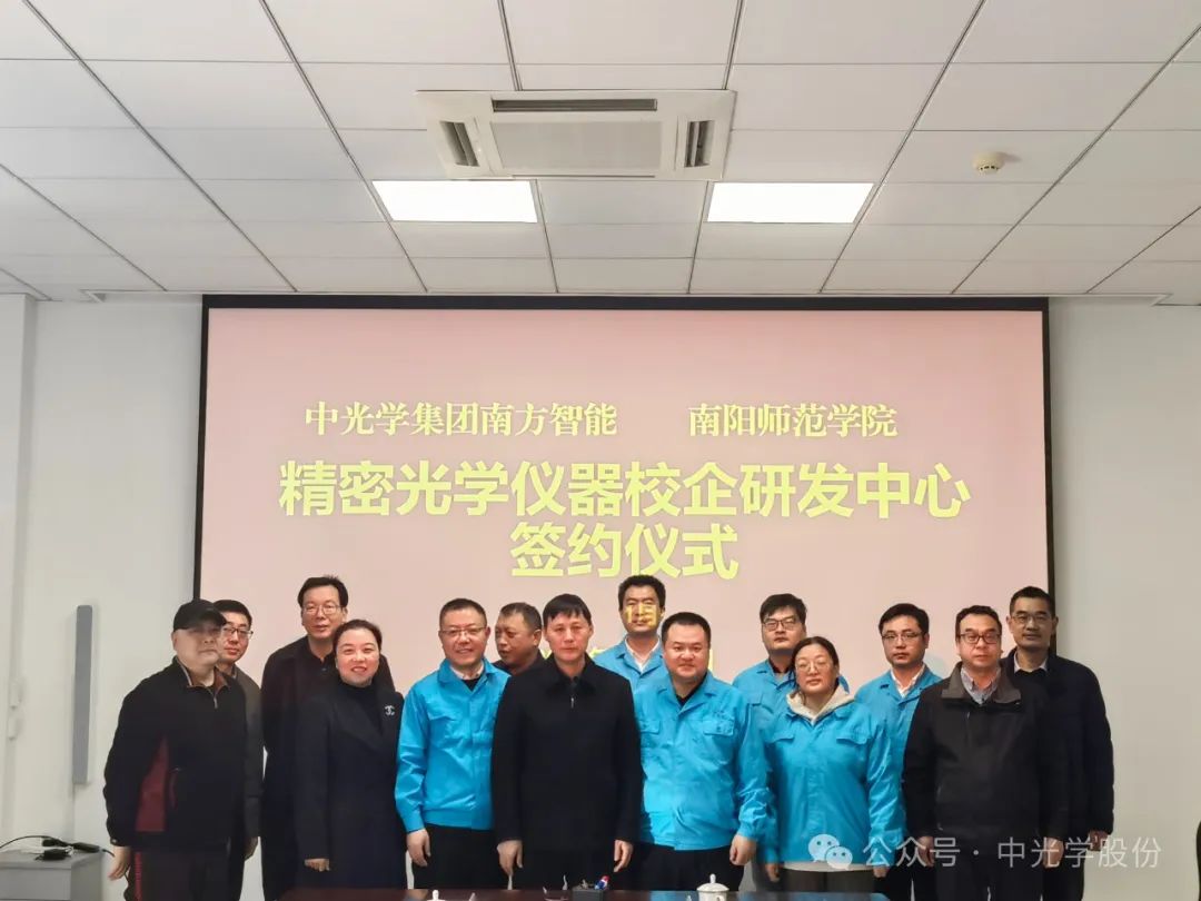 日前,南方智能和南阳师范学院精密光学仪器校企研发中心挂牌仪式成功举行。公司总会计师、党委委员杨凯,南阳师范学院副校长、党委委员熊新忠,公司总经理助理、南方智能董事长、党支部书记王大治出席揭牌活动。