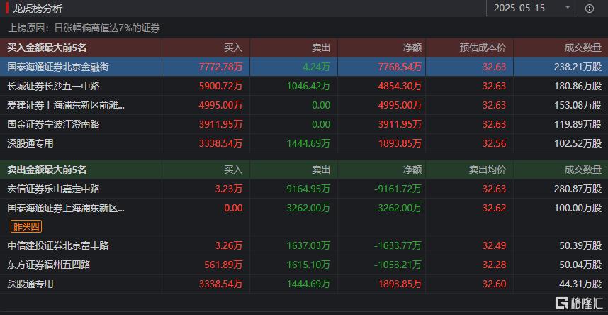 今日,国泰海通北京金融街净买入7768.54万元,章盟主净卖出3262万元。深股通专用席位买入3338.54万元,净买入1893.84万元。