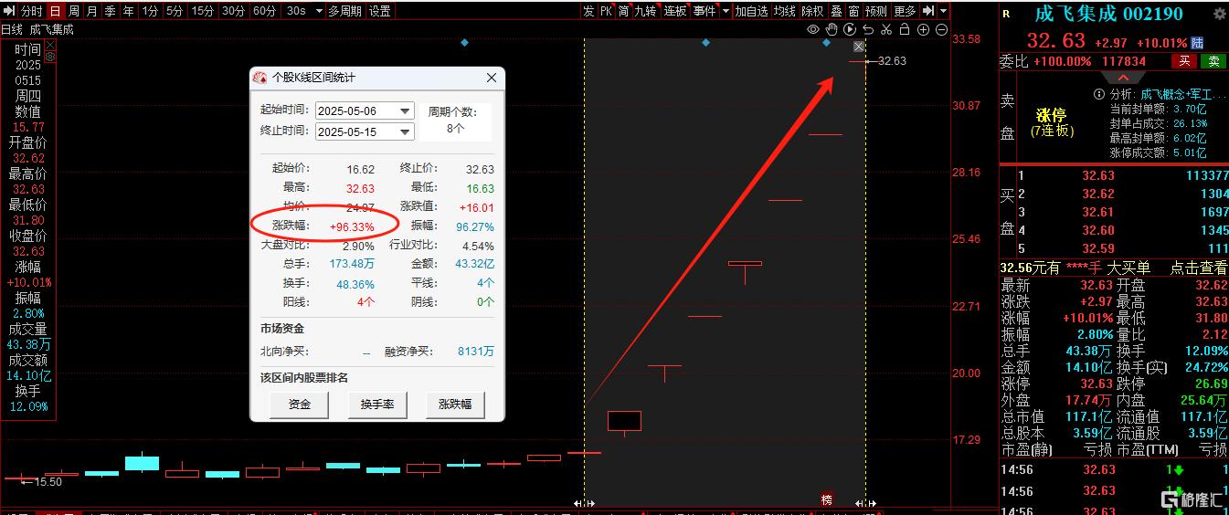 但成飞集成的涨势依旧强势,并登上了“连板天梯”。