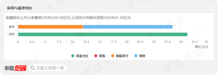 2007年上市至今,劲嘉股份累计募资28.5亿,同时累计派现31.25亿,分红金额超过募资金额。