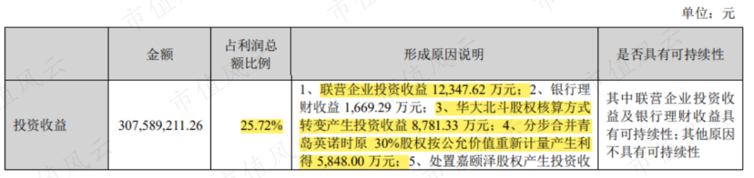 还有一点需要指出,2021年劲嘉股份实现投资收益3.08亿,主要来源于联营企业、银行理财、核算方式转变产生的投资收益等,占利润总额的25.72%,是归母净利润增长的主要原因。