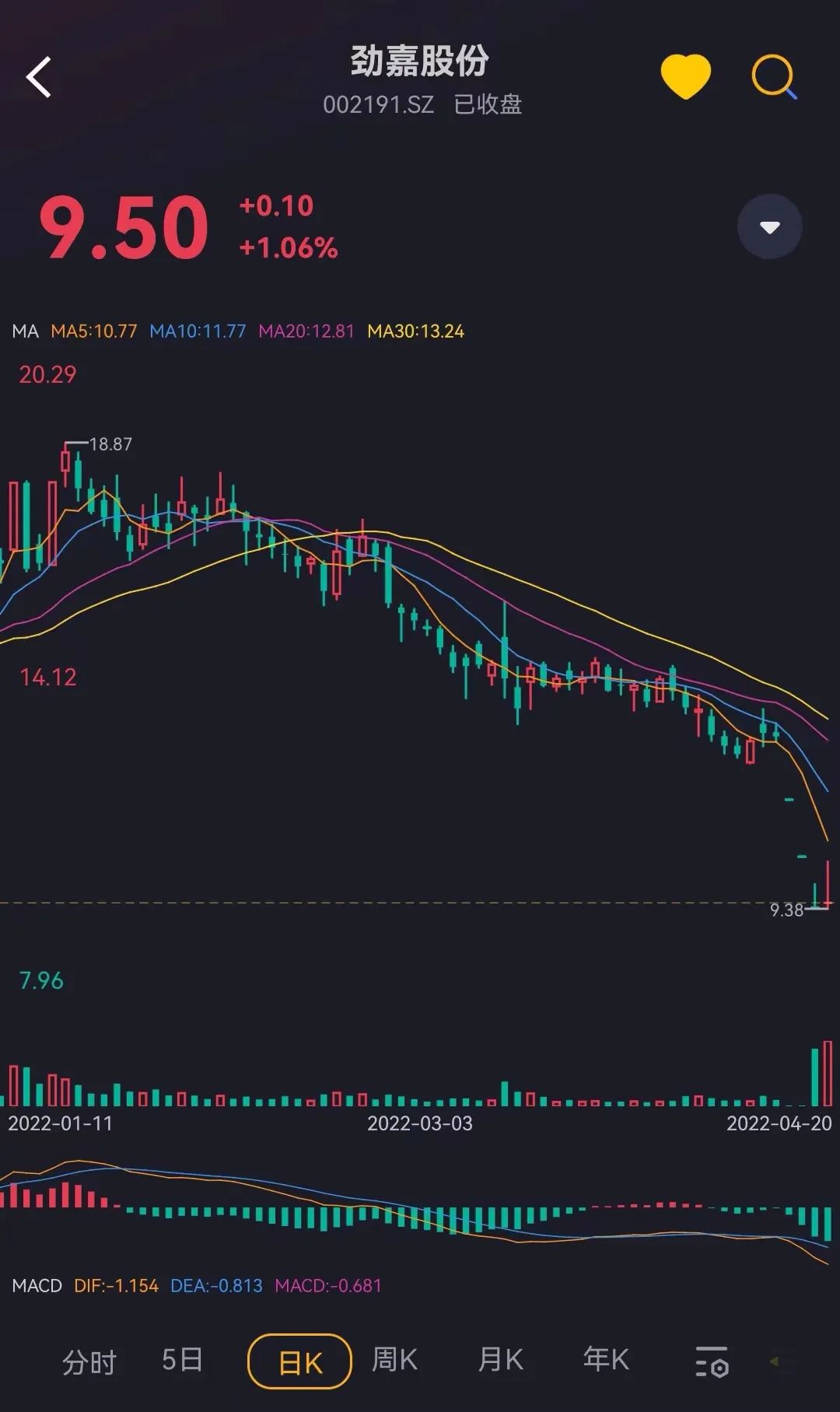 可能上市公司也扛不住股价如此接连下跌,4月18日晚间,劲嘉股份公告拟以3亿-6亿资金回购股票,回购价格不超过18元/股,而连续三个跌停后,劲嘉股份的股价只有9.4元/股。本次实控人立案调查,是个重要的风险信号。