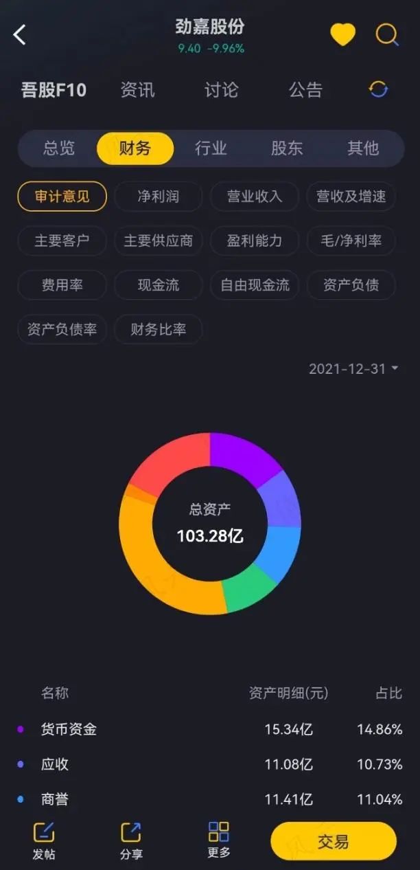 同时风云君注意到,截至2021年底,劲嘉股份商誉高达11.41亿,占净资产的14.08%。