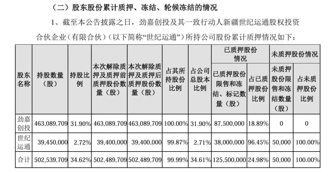 另据劲嘉股份4月7日公告,劲嘉创投及其一致行动人世纪运通所持股份99.99%已质押。劲嘉股份称,控股股东及其一致行动人所质押股份均为场外质押形式,未涉及二级市场交易平仓或强制平仓情形。
