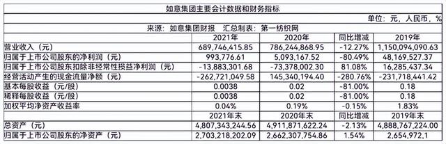 山东如意毛纺服装集团股份有限公司(以下简称“如意集团”)今天(4月28日)晚间披露2021年年报,报告期内,公司实现营业收入6.9亿元,同比减少12.27%,归属于上市公司股东的净利润99.38万元,同比减少80.94%,公司拟向全体股东每10股派发现金红利0.11元(含税),送红股0股(含税),不以公积金转增股本。