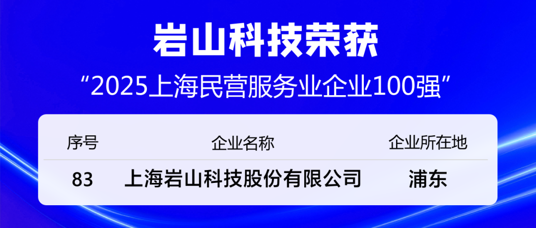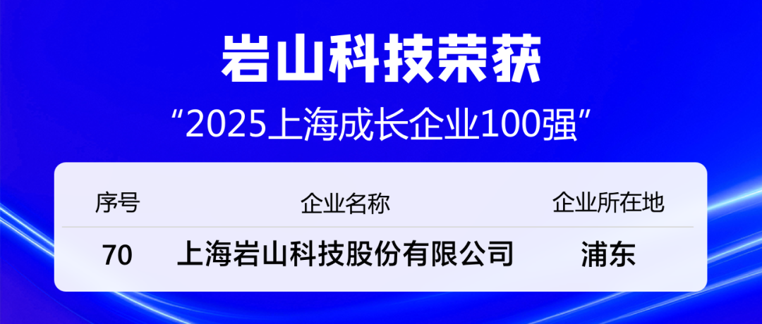 9月23日,上海市企业联合会、上海市企业家协会、上海市经济团体联合会和解放日报社联合召开新闻发布会,正式发布2025上海企业100强、民营企业100强等系列榜单。岩山科技凭借卓越的业务增长能力、稳健的经营表现和持续的创新动能,入选“2025上海民营服务业企业100强”与“2025上海成长企业100强”。