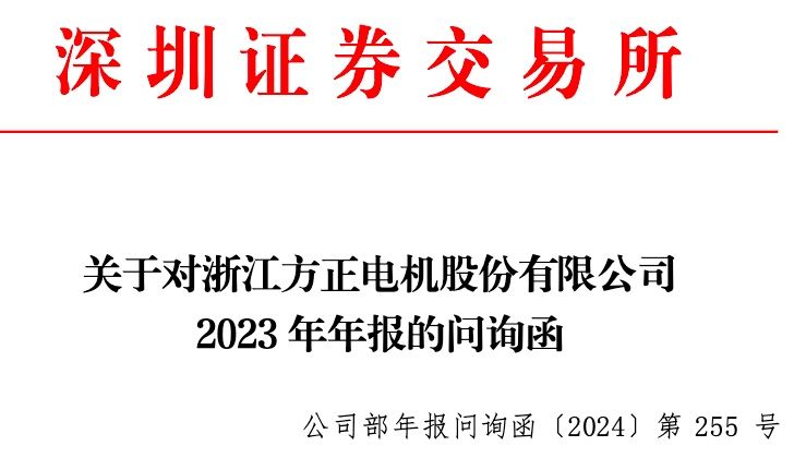 深交所要求方正电机需在2024年6月6日前,将相关说明材料报送。涉及需披露事项的,需及时履行披露义务。