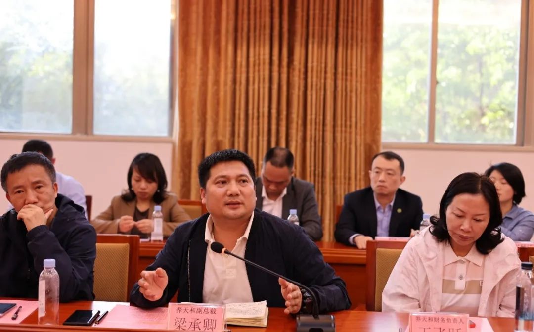 会前,在嘉应制药相关负责人的陪同下,养天和高管深入企业生产车间、文化展厅、产品展示区等地,全面了解企业运营情况。嘉应制药浓厚的客药文化、先进的生产设备、严格的质量管理体系、优质的客药产品等,给养天和高管团队留下了深刻的印象。养天和副总裁匡敏对嘉应制药在咽喉疾病领域的突出地位给予高度评价,特别指出客药典型代表产品双料喉风散,在品牌建设、中药工艺、疾病治疗效果等竞争优势,为公司创造更多的经济效益与社会效益。