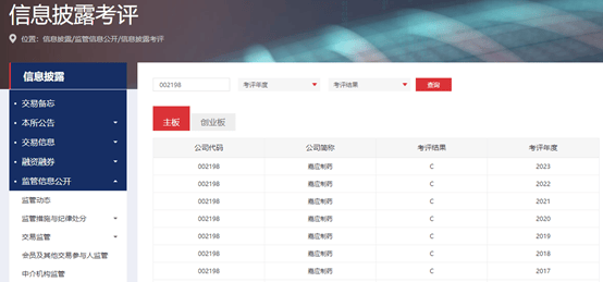 根据深交所信息披露考核数据,嘉应制药近几年仅获得C评级,仅好于D级(不合格)。