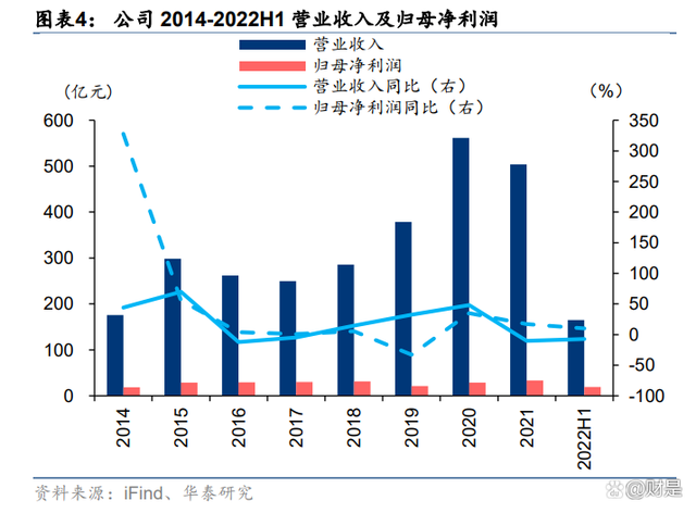 公司业绩稳定增长,风机出货量连续 11 年位列国内市场份额第一。2014-2020 年,公司营业收入规模由 175.73 亿元增长至 561.46 亿元,实现 CAGR 21.36%;归母净利润由 18.3 亿元增长至 28.44 亿元,实现 CAGR 7.62%;风机销售容量由 4190MW 增长至 12932MW,实现 CAGR 20.66%。2021 年收入及归母净利润同比增速有所下滑,主要原因系国内陆风补贴取消,行业抢装潮结束后销量下降。此外,2020 年在手订单中高毛利的海风订单减少也让公司盈利承压。2022H1 公司风机销量 4086MW,同增 37.76%;实现营收 165.12 亿元,同降 7.51%;实现归母净利润 19.20 亿元,同增 9.96%。22H1 公司营收和归母净利润同比增速放缓主要是风机招标价格下降所致。
