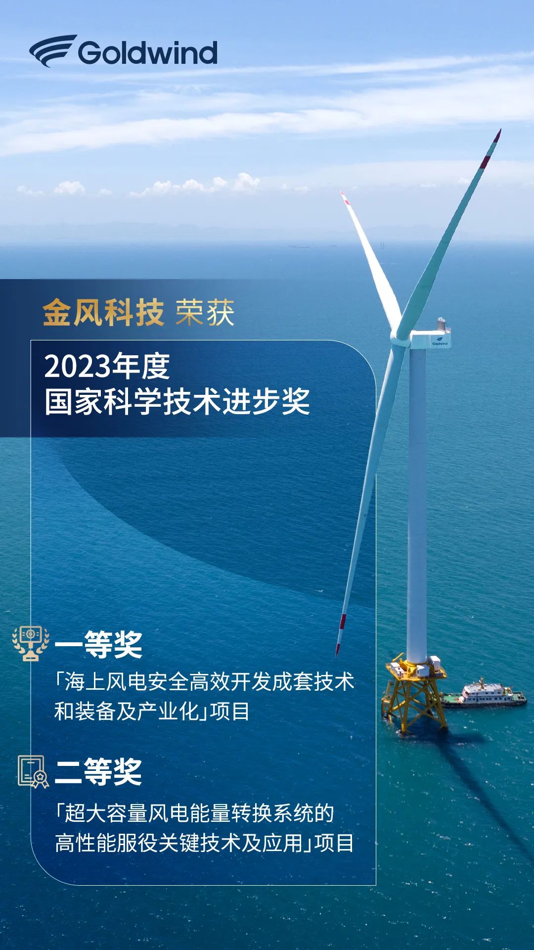 荣获国家科学技术进步奖,代表着国家和人民对于金风科技创新水平的高度肯定。金风科技将继续锚定科技强国目标,坚持自主创新,不断探索技术边界,与广大科技工作者一道,加强基础研究和应用基础研究,打好关键核心技术攻坚战,加快实现高水平科技自立自强,以科技创新支撑高质量发展、保障高水平安全,培育发展新质生产力,为以中国式现代化全面推进强国建设、民族复兴伟业作出更大贡献。