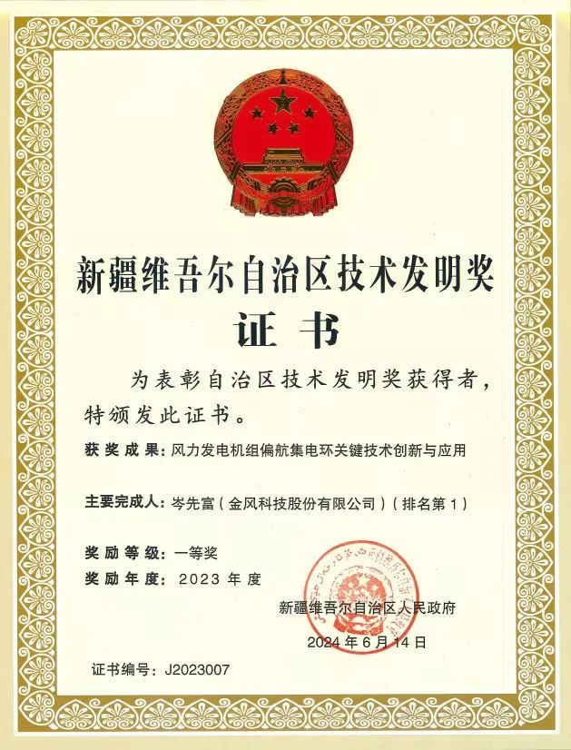 近日,金风科技拥有完全自主知识产权的“风力发电机组偏航集电环关键技术创新与应用”项目(以下简称“金风偏航集电环技术”),在新疆科技创新大会上获得技术发明一等奖。当前,偏航集电环技术已在风电行业实现广泛应用,为风电行业可靠性提升作出建设性贡献。