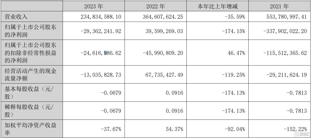 回顾往年,宏达新材2021年至2023年营业收入持续下滑,从5.54亿元锐减至2.35亿元,堪称腰斩。净利润表现更是大起大落:2021年归母净亏损3.38亿元,2022年短暂扭亏为盈(3959.93万元),2023年再度亏损2936.22万元。
