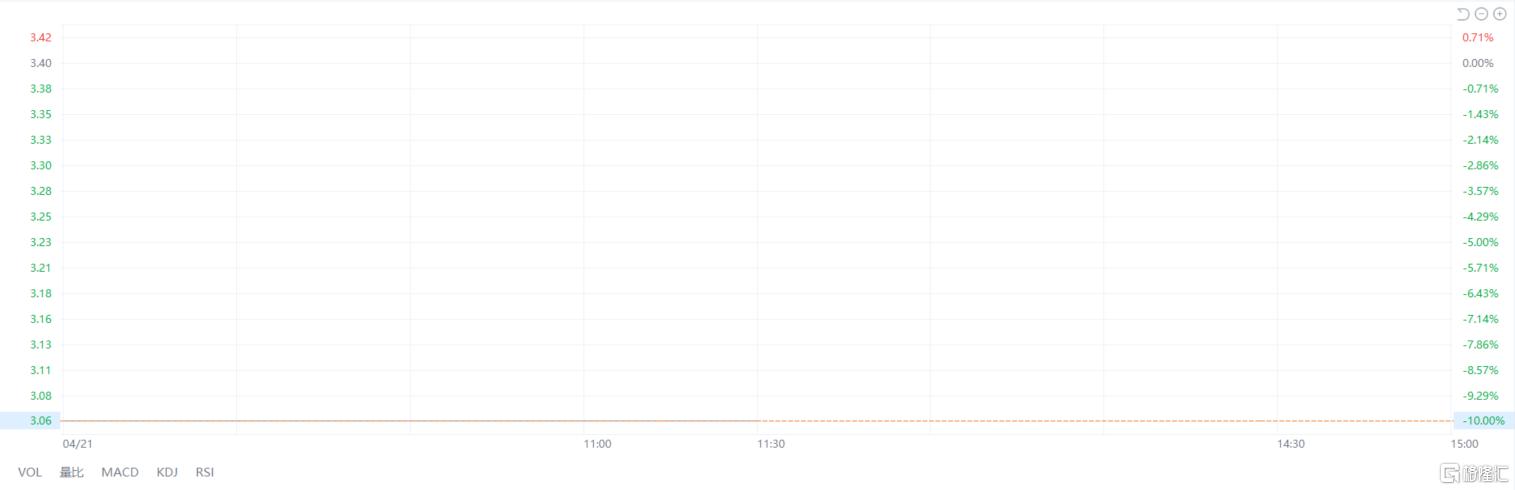 今日,宏达新材开盘便封死跌停板,报价3.06元/股,其总市值已滑落至13.23亿元。这一跌停源于昨晚公司发布的公告,公告指出,宏达新材股票交易可能被实施其他风险警示。