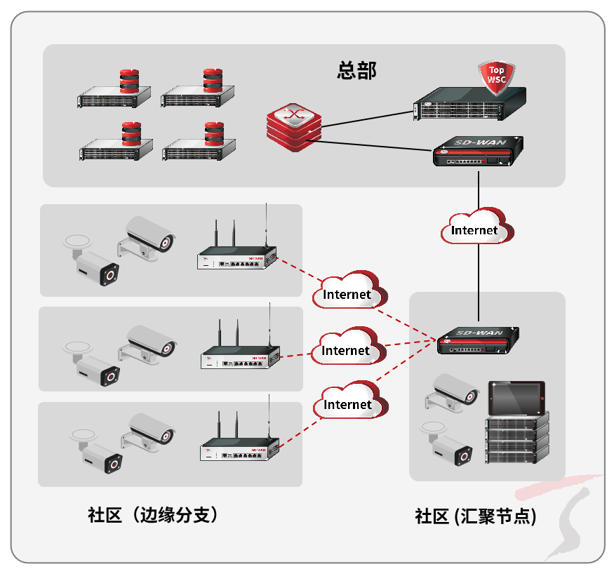 总部可根据各社区链路资源情况,灵活选用多运营线路作为主线路和备份线路,确保整体带宽成本投入的最优。