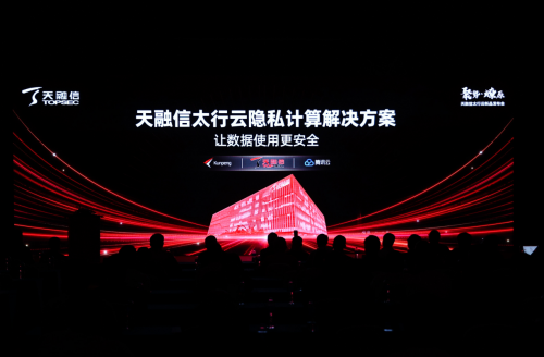 据了解,天融信云计算在注重自身发展的同时,也同产业链生态伙伴紧密联系,多年来,与各大软硬件厂商、云服务提供商和行业合作伙伴密切合作,共享资源、共同创新、共同发展,初步建立了云计算生态系统。会上,天融信与华为、腾讯云联合发布“天融信太行云隐私计算解决方案”,致力于共同为用户提供可信的数据处理和计算服务。天融信太行云隐私计算解决方案基于太行云平台,兼容多种隐私计算硬件,提供互联互通平台、数据可信流通平台、机密虚机和机密容器等产品及服务,支撑政务、医疗、金融、营销等领域的隐私计算需求。