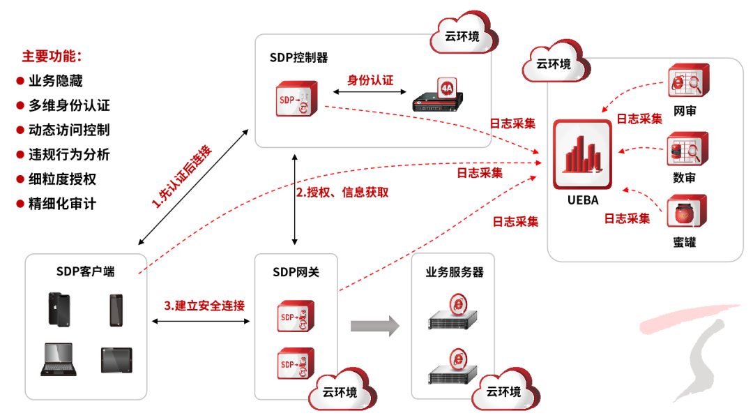 方案符合国际标准规范SDP所提出的各项安全能力,如业务隐身、动态策略授权、终端环境安全等,消除传统接入网络的安全隐患。