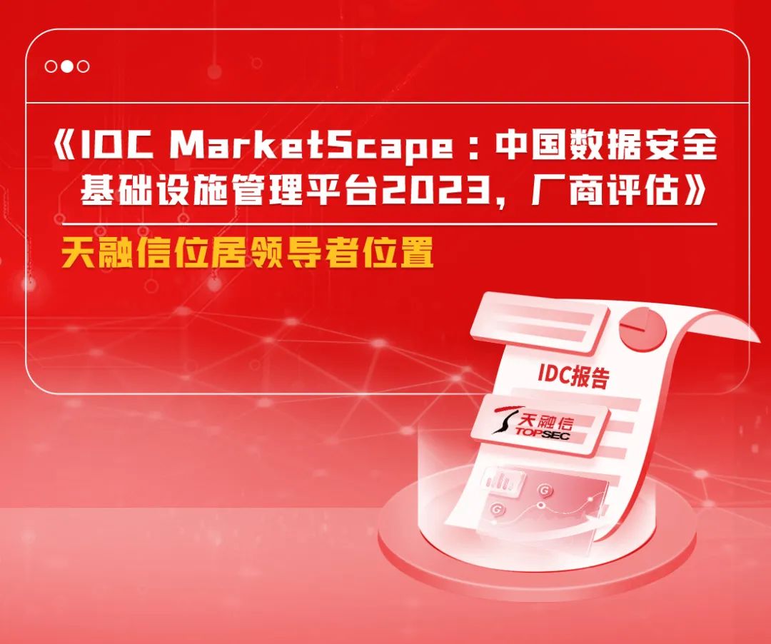 近日,国际权威咨询机构IDC正式发布《IDC MarketScape :中国数据安全基础设施管理平台2023,厂商评估》报告。天融信数据安全管理平台凭借完善的数据安全组件体系、全流程化的数据安全运营设计和丰富的落地实践案例入选领导者位置。