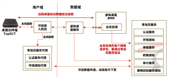 产品功能:天融信关键组件与服务对标Citrix,可提供相关产品服务,保障客户业务连续性。此外,基于安全业务的持续沉淀,天融信桌面云支持多种安全策略与能力,融入零信任安全理念,打造差异化“零信任桌面云”。