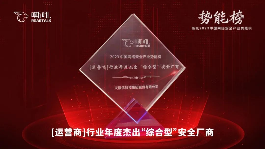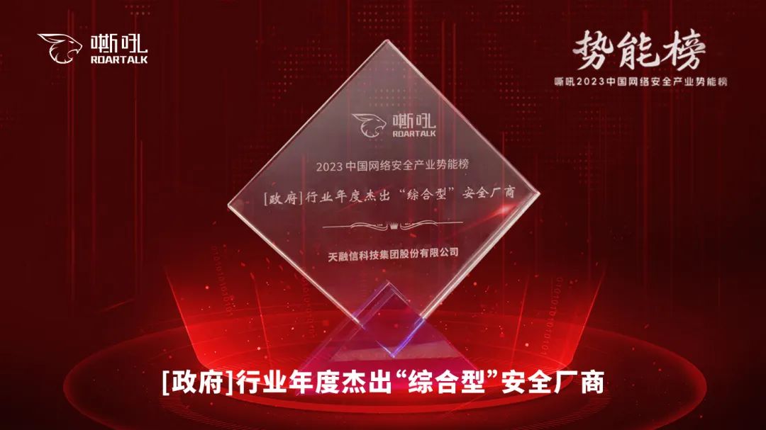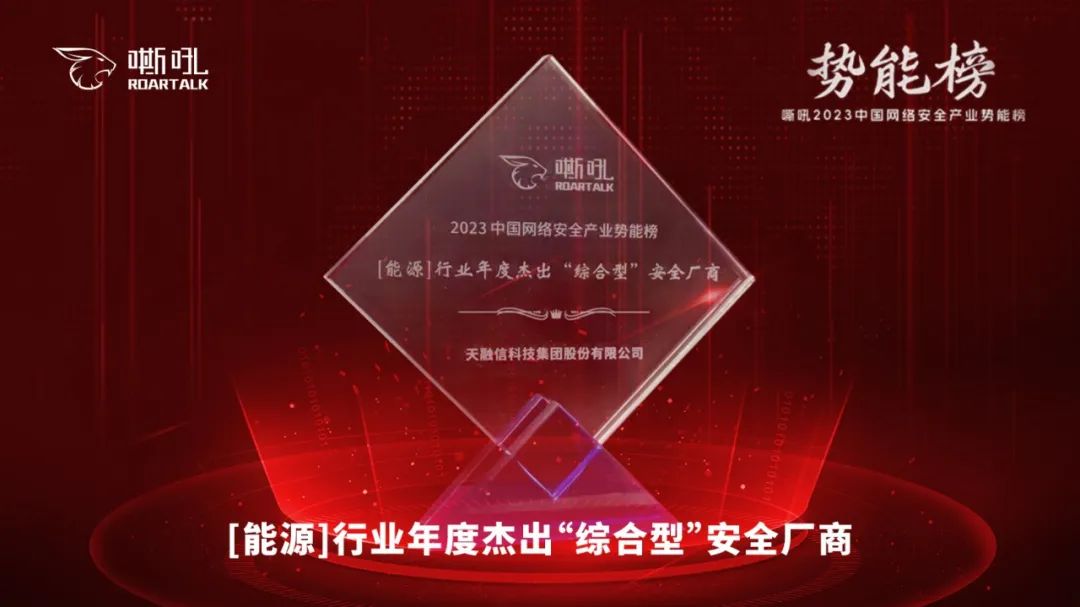 嘶吼安全产业研究院选取十大热门行业(政务、金融、能源、制造、运营商、互联网、电力、教育、医疗、交通)以及三大厂商类型(“综合型”、“专精型”、“创新型”)进行调研评选,旨在深入研判和展望中国网络安全产业的发展趋势,赋能网安领域头部厂商担负起自主创新、乘势而上的产业责任。天融信持续夯实网络安全能力,加速推进全行业营销布局,实力入选政府、能源、运营商三大行业年度杰出“综合型”安全厂商。
