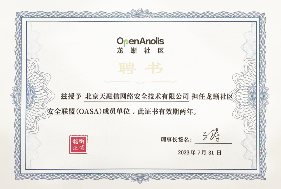 多年来,天融信积极参与开源社区建设活动,已加入了openEuler(欧拉)、openKylin(开放麒麟)、openAnolis(龙蜥)等多个开源社区。在积极为社区做出贡献的同时,重点推动开源社区成果在产品中的应用,提升产品技术创新能力,带动产业高质量发展。