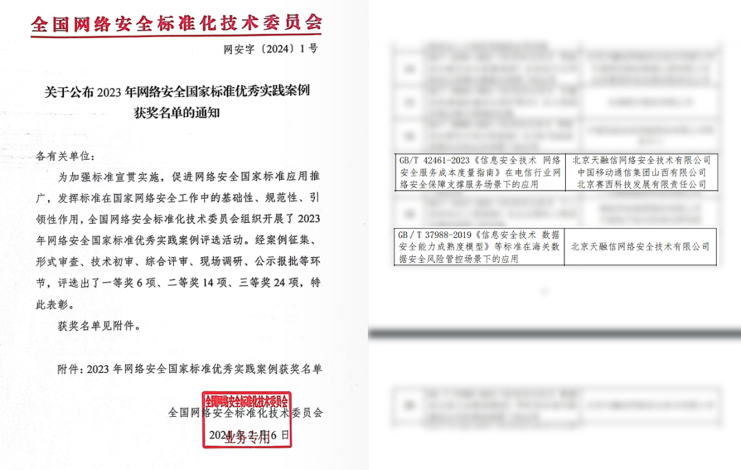 近日,全国网络安全标准化技术委员会(简称“网安标委”)公布2023年网络安全国家标准优秀实践案例获奖名单。