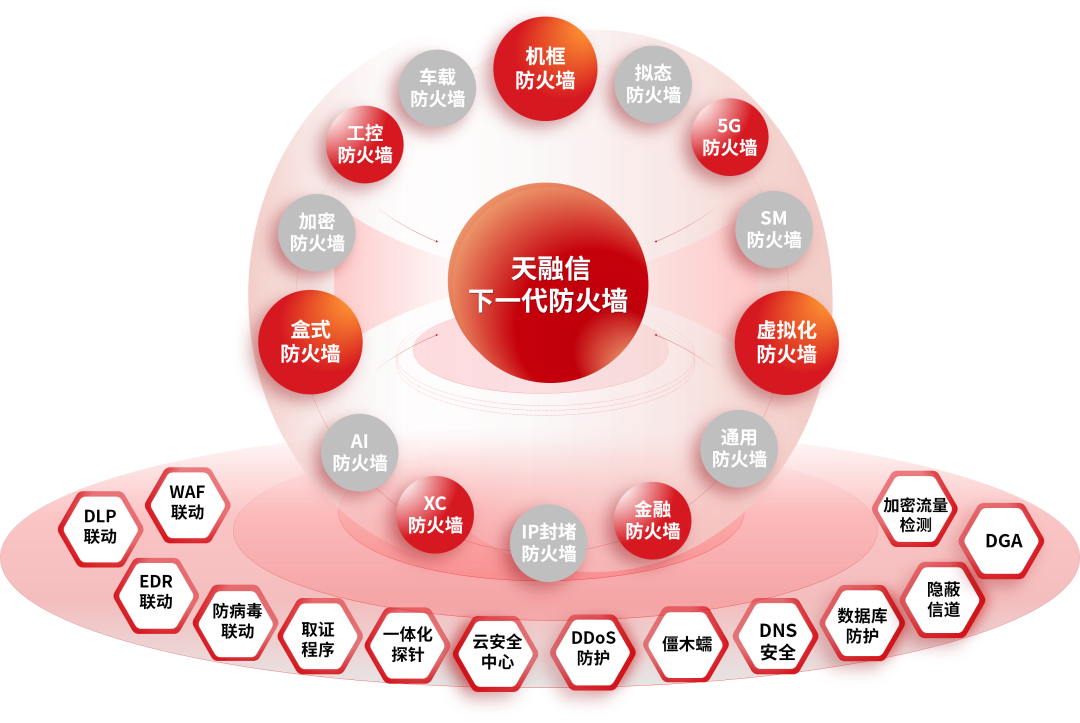近年来,随着人工智能、生成式AI等新技术的蓬勃发展,云计算、工业互联网、车联网、物联网等新场景的不断丰富,科技自主创新的重视程度越来越高,以防火墙为核心的网络安全防护能力也正加速向智能化、一体化、行业化、国产化方向发展。天融信防火墙紧跟市场和技术发展趋势,不断创新,持续提升产品防护能力,满足日益增长、快速变化的安全防护需求。