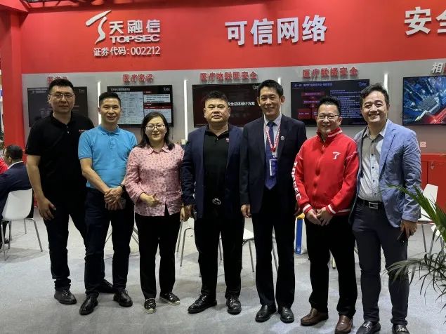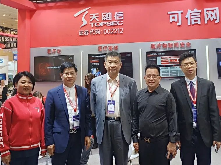 本届大会,天融信携医疗云解决方案、医疗密评解决方案、医疗物联网安全、医疗数据安全方案、医院双网隔离方案、云上医院信创安全六大场景解决方案亮相。期间,广东省医院协会会长黄力,广东省医院协会医院信息化专业委员会主任委员、暨南大学附属顺德医院院长陈玉兵,专委会副主任委员、暨南大学附属顺德医院发展运营部主任兼信息科科长吴庆斌,广东省医院协会副秘书长潘晓雷,南方医科大学附属第三医院副院长雷航,专委会青年委员会主任委员、南方医科大学附属第三医院信息科科长张家庆等多位领导、专家莅临天融信展区,就医疗领域信息安全建设现状与发展等话题进行了深入探讨,并对天融信在医疗信息领域的前沿技术研究与创新应用实践表现出高度认可。