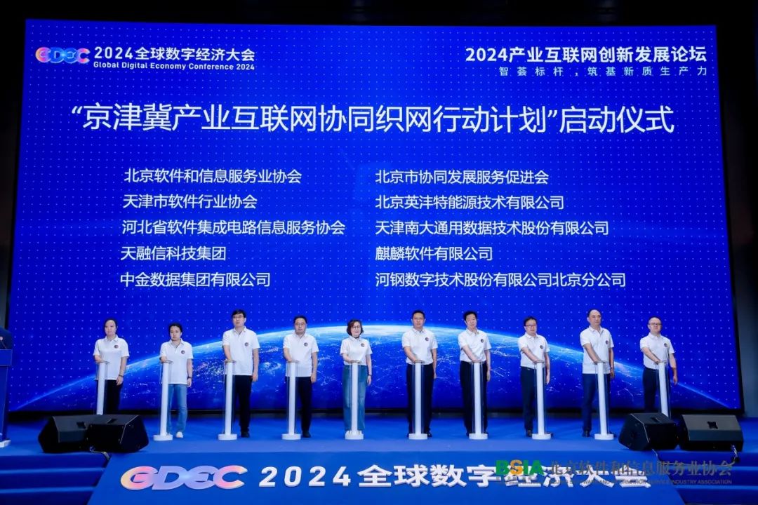 成果发布环节,天融信科技集团副总裁吕延辉作为北京软协副会长单位代表,与京、津、冀三地协会秘书长及企业代表共同启动“京津翼产业互联网协同织网行动计划”。