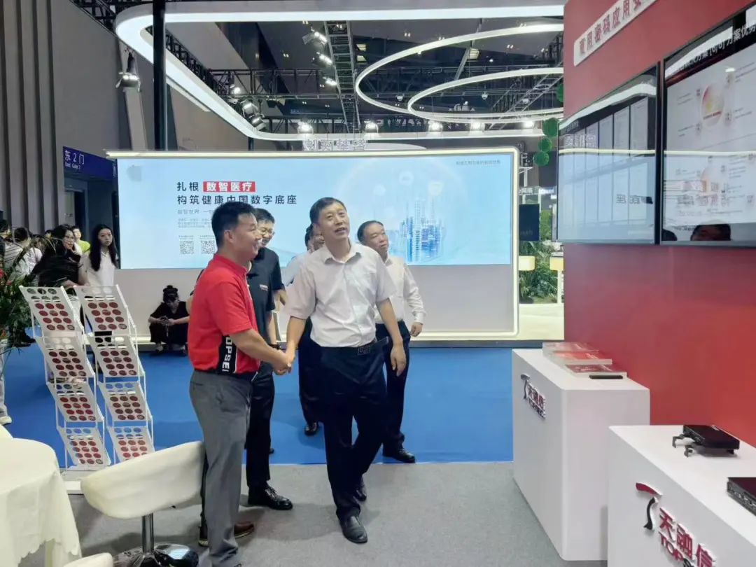 会议期间,吴士勇(国家卫生健康委统计信息中心党委书记、主任,中国卫生信息与健康医疗大数据学会常务副书记兼秘书长)、胡建平(国家卫生健康委统计信息中心副主任、中国卫生信息与健康医疗大数据学会副会长)等领导莅临天融信展区参观交流,并对天融信在医疗卫生领域新技术新场景的创新及应用成果表示肯定。