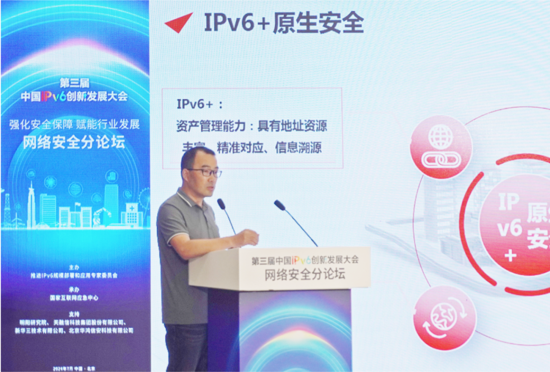 近日,由推进IPv6规模部署和应用专家委员会主办,中国信息通信研究院、国家互联网应急中心、中央网信办数据与技术保障中心、中国通信标准化协会、中关村科学城管理委员会等联合承办的第三届中国IPv6创新发展大会在北京举行。大会以“攻坚开拓·引领未来”为主题,围绕IPv6技术演进、融合应用和网络安全等方面深入开展交流研讨。天融信科技集团受邀出席作主题分享,共探IPv6网络安全防护体系建设发展新思路、新方向。
