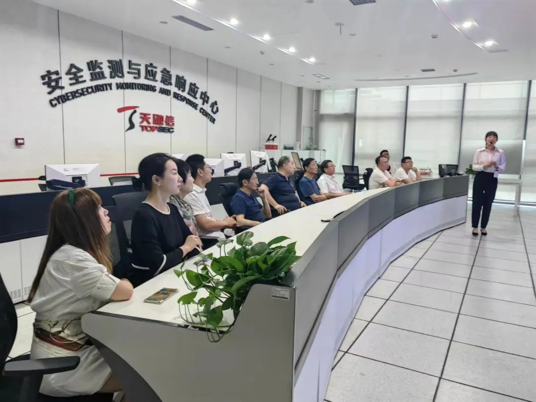 调研组一行参观了天融信科技集团展厅、安全监测与应急响应中心和天虞实验室,信息安全分会副理事长、天融信高级副总裁刘辉全程陪同。调研组详细了解了天融信近30年来的发展情况,以及公司在大数据、云计算、人工智能、物联网、车联网等前沿领域的技术研发进展,并现场观摩了新技术带来的行业应用落地展示。